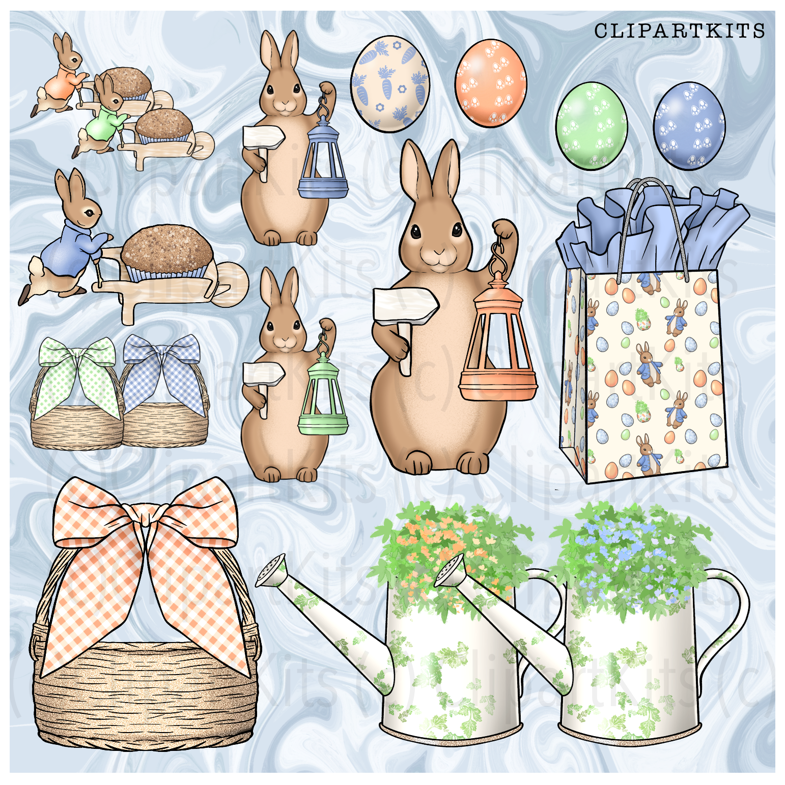 An instant download complete planner clipart kit bundle with a spring bunny party Easter theme!